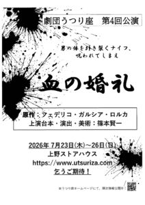 2025年本公演 演目決定しました~! 2024 12/23 最新ニュース お知らせ 2024年12月23日 2024年12月23日 次回の本公演、日程に続き、演目が決定いたしました! 『リア』 作:岸田理生 演出:篠本賢一 2025年5月28日(水)~6月1日(日)公演予定 会場:上野ストアハウス ※上演スケジュール、チケットご予約情報等、詳細は追ってご案内いたします。 最新ニュース お知らせ よかったらシェアしてね! URLをコピーしました! URLをコピーしました! 2025年本公演 公演日決定! 2025年5月 第三回公演『リア』 関連記事 2026年本公演 演目・公演日決定です! 2026年3月17日 『リア』 アーカイブ配信終了のお知らせ 2025年9月28日 『リア』 アーカイブ配信決定! 2025年6月10日 『リア』 公演終了のご報告 2025年6月6日 2025年本公演 公演日決定! 2024年12月4日 『鴉よ、おれたちは弾丸をこめる』 アーカイブ配信販売終了のお知らせ 2024年10月1日 『鴉よ、おれたちは弾丸をこめる』 アーカイブ配信開始! 2024年8月21日 『鴉よ、おれたちは弾丸をこめる』 アーカイブ配信時期決定! 2024年8月18日